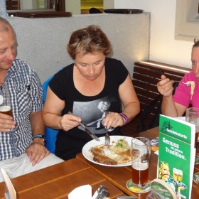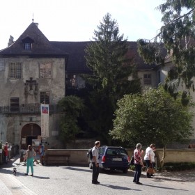 Další den byl ve znamení pohodového přesunu po cyklostezce z Vispu do města Sion, prakticky po rovině, kde se nemůže nic stát. Jenže chyba lávky, asi po hodině jízdy přichází inkiminovaná dvojice mokrých dřevěných mostků, na nichž si pět účastníků zájezdu, včetně mě, ustlalo a poroučelo k zemi. Naštěstí všichni bez zranění pokračují dál. Projíždíme kolem krásné vesničky s vodopádem, kolem stanice s desítkou obrovských satelitů na chytání UFOunů a rozlehlými vinicemi. Dominantou města Sion jsou kromě velkého letiště, kde každých 30 sekund přistává stíhačka, dva vrcholy nad městem Valére a Tourbillon, na nichž se tyčí hradní kostel Notre-Dame-de-Valére a zřícenina hradu. Já však na procházku nemám moc náladu, neboť mě začíná bolet a otíkat zápěstí. Náš pan dochtor Zbyňa to odhaduje na možnou zlomeninu (jak se později ukázalo přesně), takže potom co mě vzkřísil ze země, následuje spolu s ním a „prezidentem“ klubu návštěva místní nemocnice. Čekání se trošku protahuje, zjišťujeme že anglicky se domluvit ve francouzském kantonu je problém (a německy nemožné), po trojnásobném rentgenu se fráze „no fracture“ mění na „probably it is fracture“, všichni mě považují za profesionálního cyklistu a monsieura Chlebníčka za mého tátu:-) Se sádrou až nad loket, rentgenovými snímky, zprávou pro české doktory a zážitkem z pěkné moderní nemocnice nasedáme do taxíku a velice se bavíme při hanácko-francouzské konverzaci.