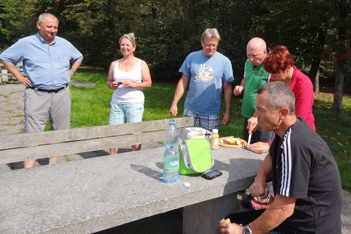 Po výborné snídani (leštinský chleba má ve Švýcarsku obrovskou konkurenci:-) nás čeká přesun busem do vesničky Täsche, dále do Zermattu už auta nesmí a tak několik statečných sedá na bicykly a za svěžího deštíku vyrážíme. V Zermattu je to samý jeřáb, všude se něco staví, navíc stále prší, takže jen projíždíme místní hlavní straβe až ke stanici lanovky. Tady potkáváme část pěší výpravy, která zvolila cestu do Zermattu vláčkem, ukazujeme si že asi tam někde by mohl být Matterhorn (4478 m n.m.) a najednou se počasí začíná výrazně zlepšovat a před námi se postupně objevuje typická špičatá stěna. Po válečné poradě pokračujeme vstříc výškovým metrům směrem k Černému jezeru. Asfaltka u mezistanice lanovky přechází v alpskou lesní cestu, která následně do vyšlapaného chodníčku vedoucí po lyžařské trati. Postupem času se kola ocitají stále častěji na našich zádech a cyklovýlet se mění v horolezecký výšlap. Odměnou nám jsou nádherné výhledy na Zermatt a ledovec, který už je jen kousek od nás. Nad stanicí Furgg (2434 m n.m.) však přichází během minuty, tak hustá mlha, že není vidět 10 metrů před sebe, u lanovky ve stanici Schwarzsee (Černé jezero, 2583 m n.m.) už takřka sněží, takže se po dvou naloďujeme i s koly do kabinek a za 28CHF sjíždíme dolů do Zermattu a následně opět za deště k autobusu.